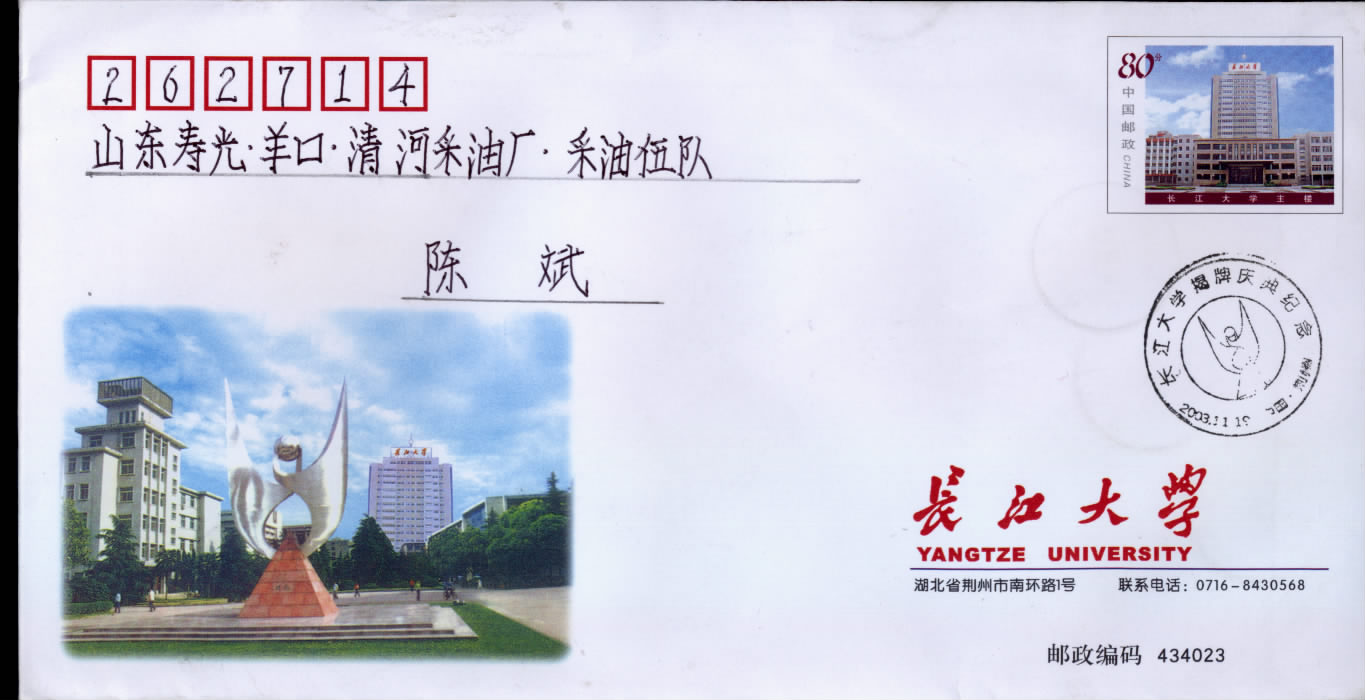 《长江大学主楼》普通邮资封 Post By:2003/11/28 12:09:11 [只看该作者]